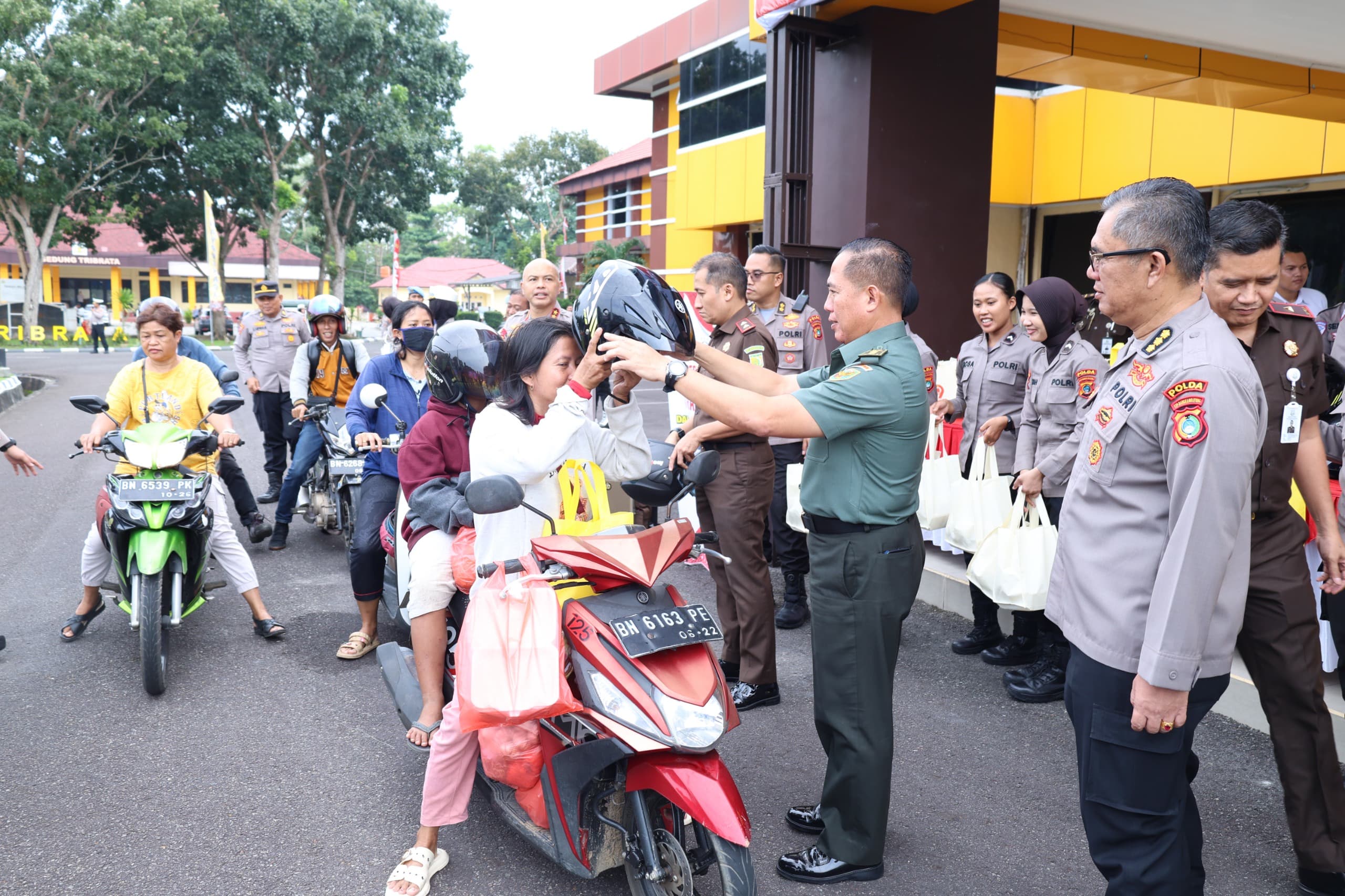 “Hari ini bersama Pak Kajati dan Pak Kasrem beserta Para Pejabat Utamanya, kita melaksanakan kegiatan pembagian tanda mata kepada masyarakat, helm, makanan dan dilanjutkan dengan silaturahmi di aula Tribrata Polda,”kata Hendro Pandowo usai kegiatan.