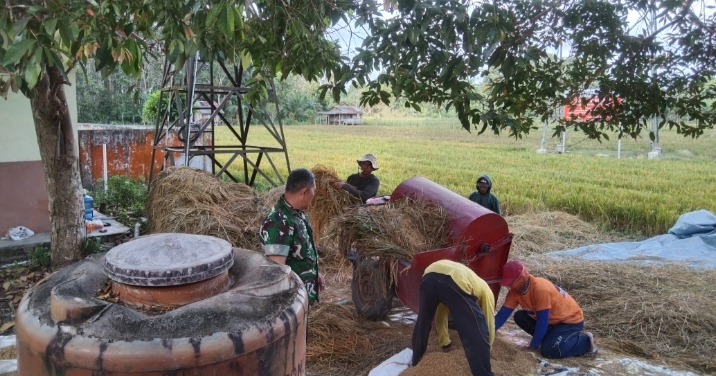 Sinergi Babinsa dan Petani: Serka Hermawan Kawal Panen Padi 8 Ton di Desa Namang