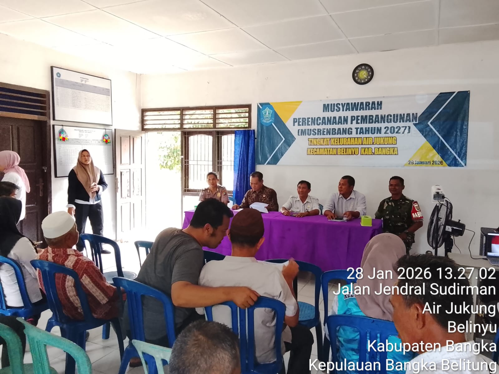 Air jukung, kejarberita-news.com – Menyongsong tahun anggaran 2027, Kelurahan Air Jukung menggelar Musyawarah Perencanaan Pembangunan tingkat Kelurahan yang berlangsung khidmat di Aula Kantor Kelurahan Air Jukung, Kecamatan Belinyu, Rabu (28/01/2026).