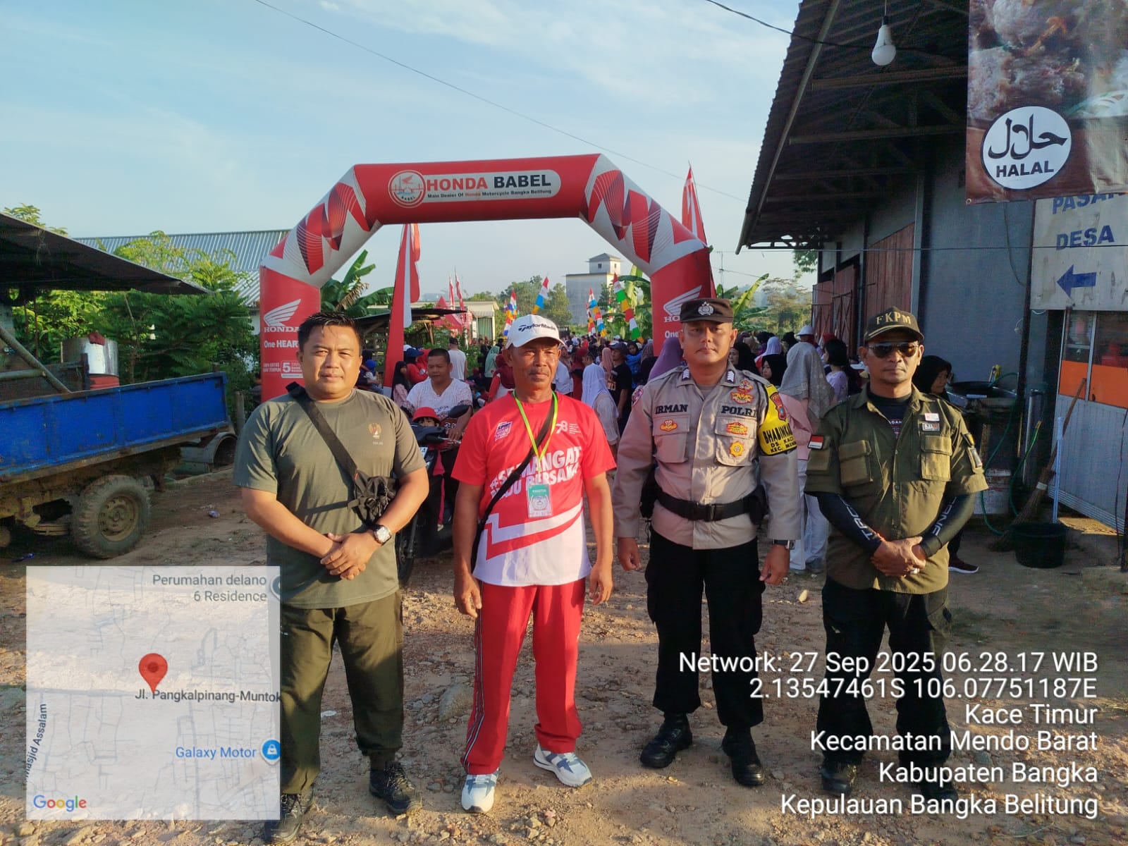 Acara Jalan Sehat ini juga dihadiri oleh berbagai unsur penting di wilayah Mendo Barat, menunjukkan soliditas antar lembaga dalam menyukseskan acara desa.