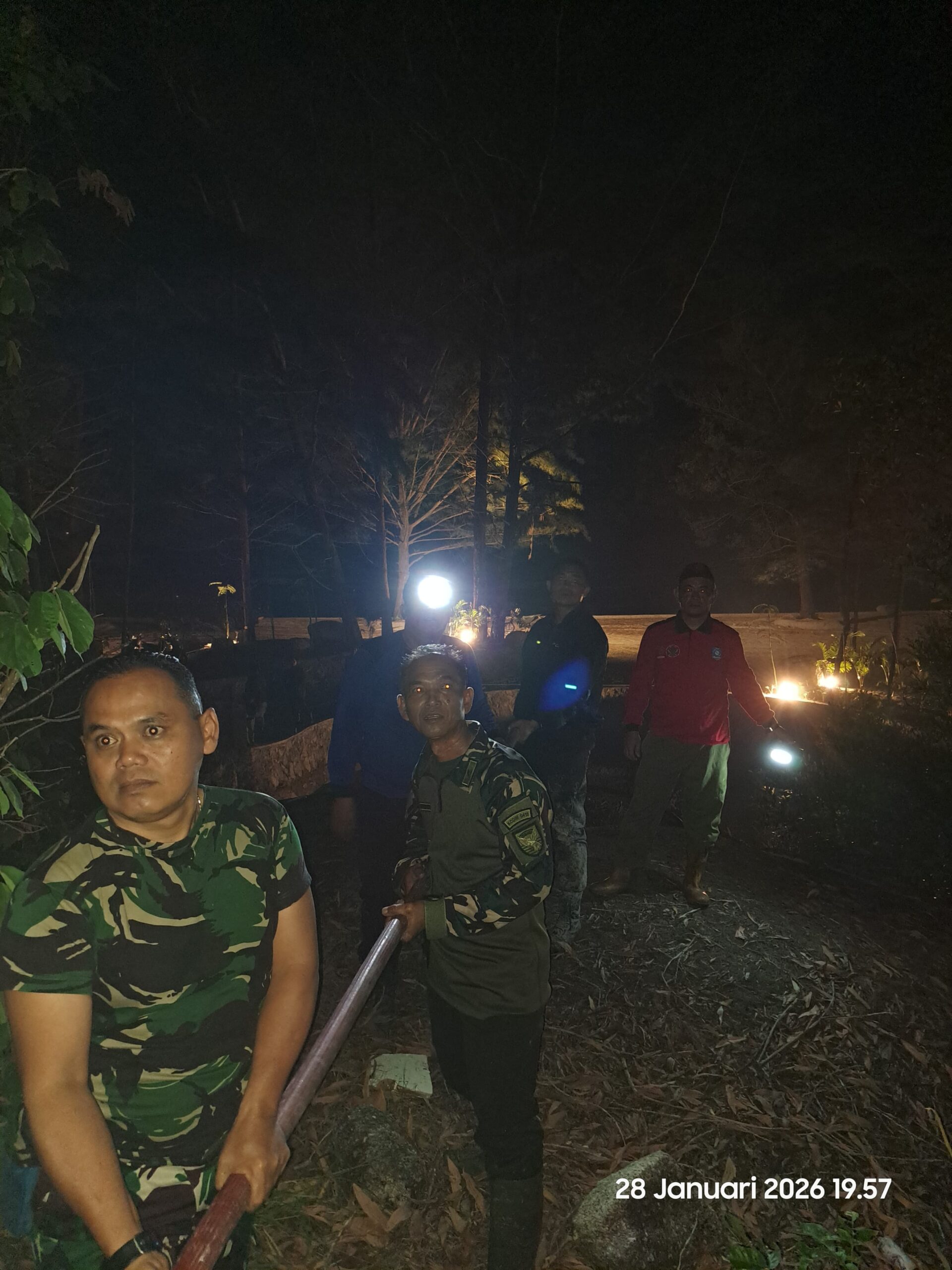 Sungailiat, kejarberita-news.com – Menunjukkan aksi sigap terhadap bencana, Danramil 413-01/Sungailiat, Mayor Cke Bagyo, memimpin langsung personelnya untuk berjibaku memadamkan kebakaran hutan lindung di Jalan Lintas Timur, Desa Rebo, Kecamatan Sungailiat, pada Rabu (28/1/2026) malam.