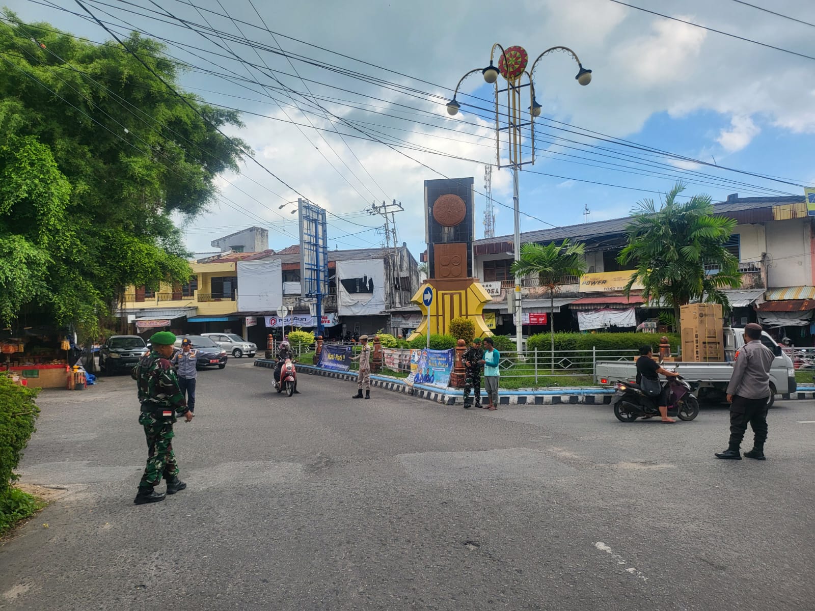 Guna memastikan situasi tetap kondusif, Pos FKPM Sungailiat diisi oleh personel lintas sektoral yang bekerja sama secara harmonis, TNI, Polri, Satpol PP, Dishub dan personil Pramuka.