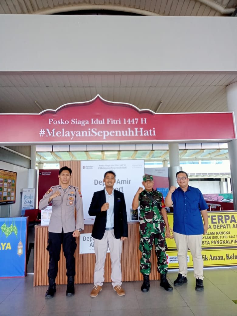 Situasi di area keberangkatan maupun kedatangan Bandara Depati Amir terpantau dalam keadaan aman, lancar, dan terkendali. Petugas gabungan tidak hanya melakukan pengawasan keamanan, tetapi juga siap memberikan pelayanan kesehatan dan informasi bagi para pemudik