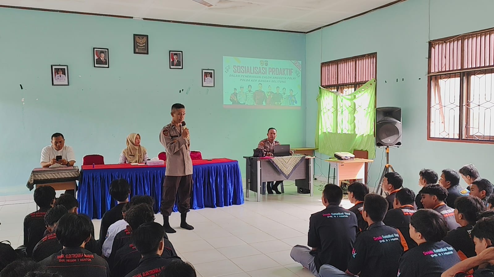 Selain memberikan materi, personel Sat Lantas juga membuka sesi dialog interaktif. Para siswa tampak antusias menjawab pertanyaan seputar arti rambu-rambu dan aturan berkendara yang benar.