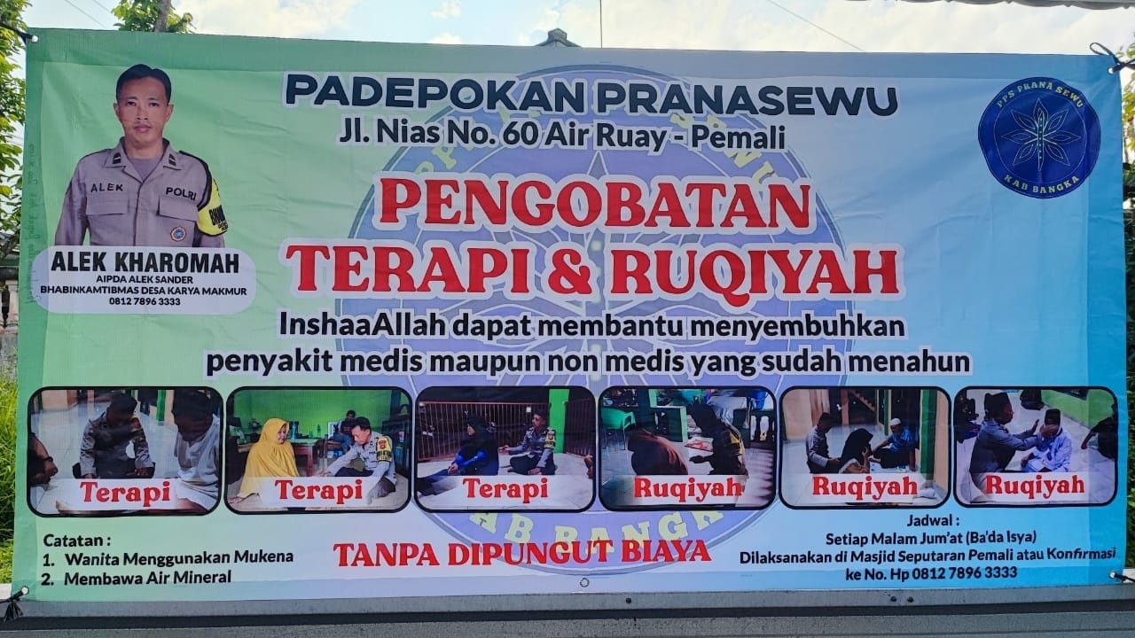 “Ruqiah sudah lama saya lakukan. Sejak 2018, kegiatan ini sudah dilaporkan ke Polda Kepulauan Bangka Belitung sebagai agenda rutin saya di Desa Karya Makmur,” kata Aipda Alek saat ditemui di sela-sela kegiatannya meruqiah warga, Senin (13/10/2025).
