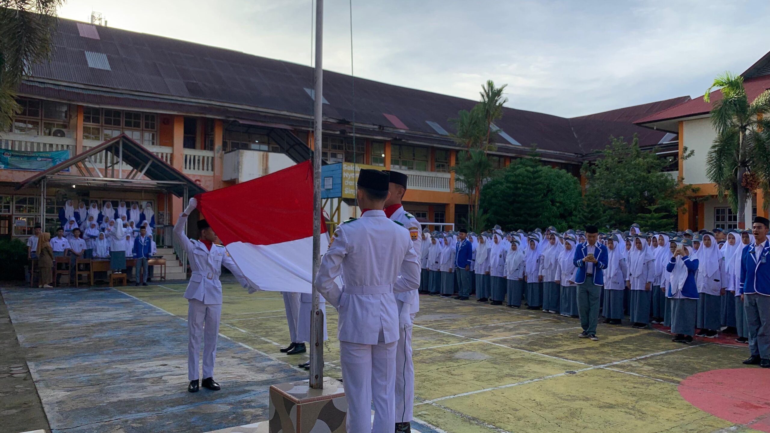 “Salah satu cara menghargai usaha dan kerja sama, tanggung jawab yang di bebankan memang berat bukan hanya berdiri dan hadir saja, maka kita berikan apresiasi kepada seluruh perangkat upacara yang telah melaksanakan upacara bendera pada hari ini, maka dari itu Galilah ilmu sedalam dalam nya ambil lah ilmu untuk masa depan.