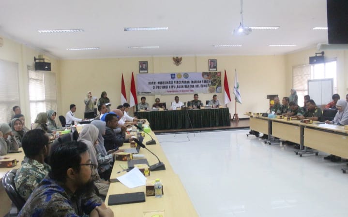 Rakor yang dihadiri oleh berbagai unsur TNI dan instansi pertanian bertempat di Aula Balai Riset dan Mekanisasi Pertanian (BRMP) Provinsi Kepulauan Babel.