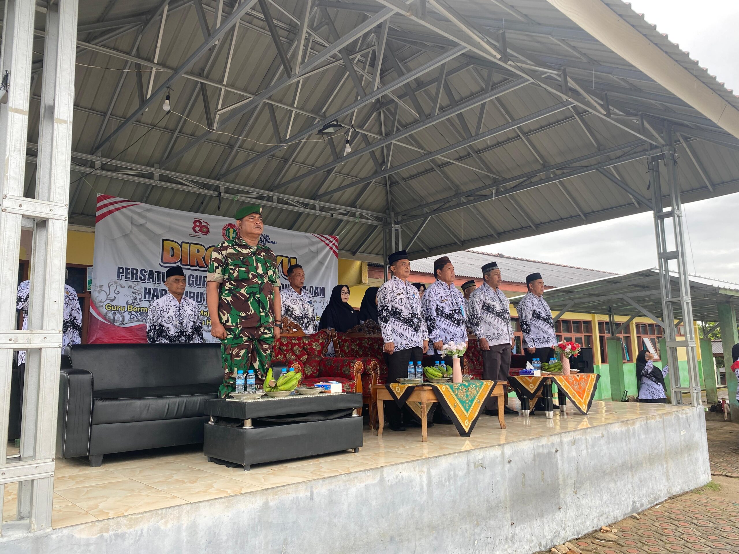Pelda Supa’at mewakili Ws. Danramil 413-03/Merawang menghadiri upacara bendera dalam rangka memperingati HUT ke-80 PGRI Tahun 2025 tingkat Kecamatan Merawang, Selasa (25/11/2025)