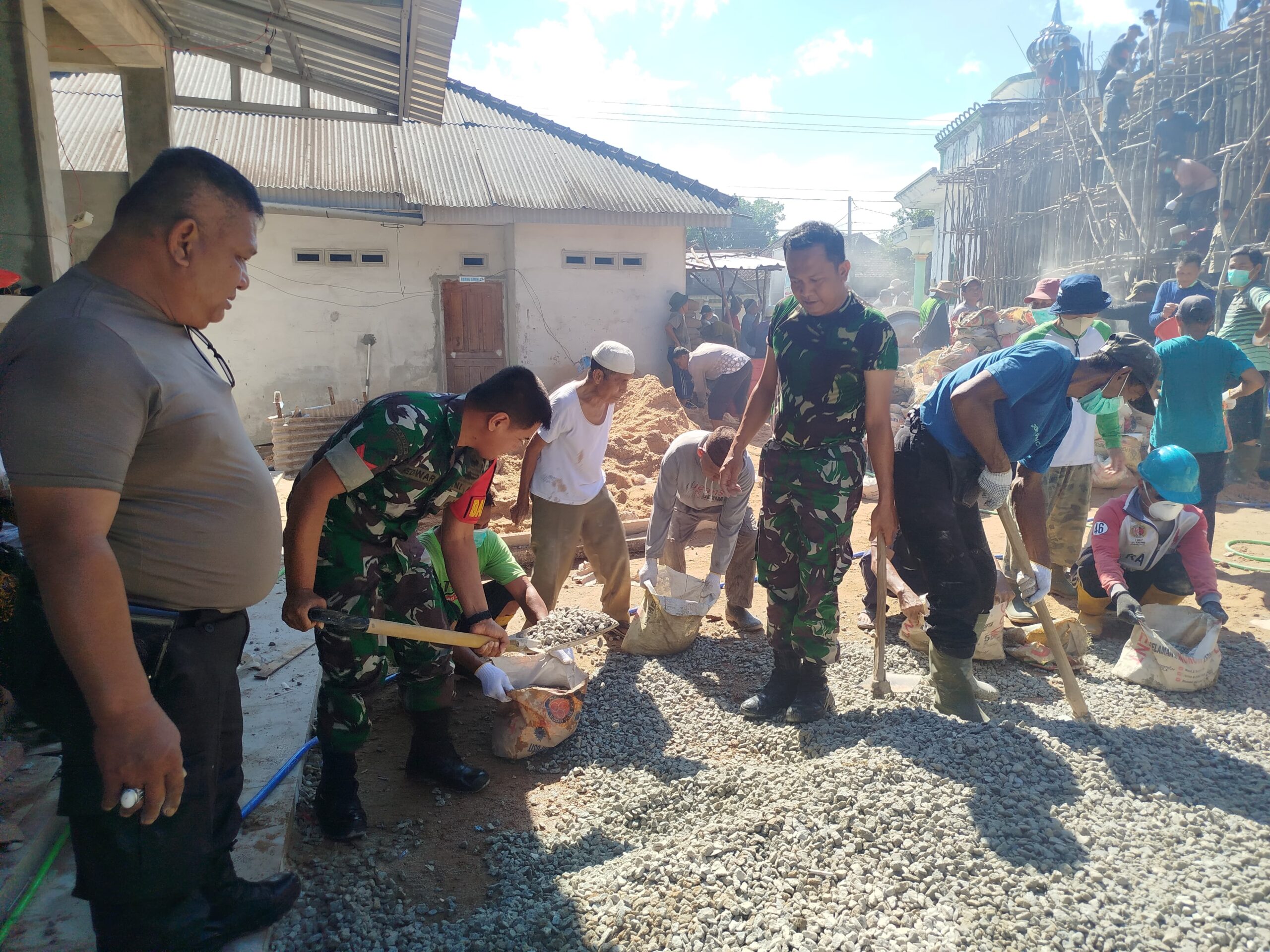 Kegiatan dimulai pukul 07.00 WIB dan berlangsung hingga selesai. Aparat bersama warga tampak bahu-membahu melakukan pengecatan, perbaikan bangunan, dan pembersihan area masjid.