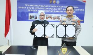 Bangka, kejarberita-news.com — Universitas Bangka Belitung menjalin kerja sama strategis dengan Kepolisian Daerah Kepulauan Bangka Belitung melalui penandatanganan Perjanjian Kerja Sama (PKS) yang dilaksanakan pada Kamis, 5 Maret 2026, di Ruang Betason I, Kampus Terpadu Balunijuk, Kabupaten Bangka.