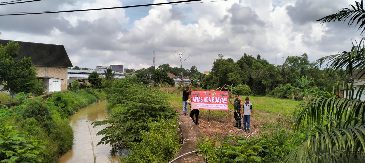 Waspada Kemunculan Buaya, Babinsa dan Bhabinkamtibmas Pasang Papan Imbauan di Desa Sekar Biru