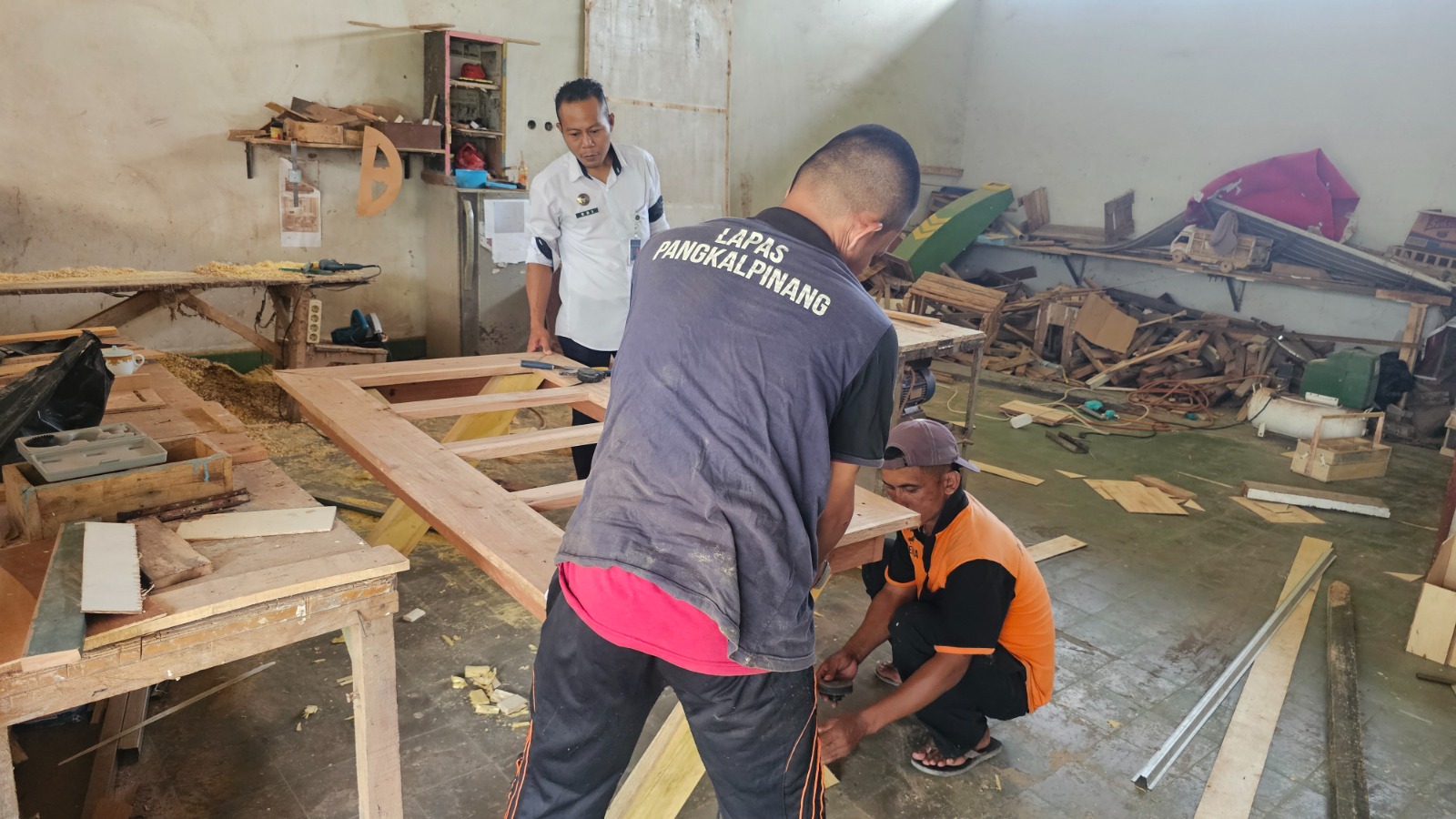 Pangkalpinang, kejarberita-news.com – INFO_PAS – Warga Binaan Lembaga Pemasyarakatan (Lapas) Kelas IIA Pangkalpinang kembali menunjukkan hasil nyata dari program pembinaan kemandirian melalui kegiatan usaha mikro, kecil, dan menengah (UMKM). Kali ini, Warga Binaan memproduksi tiga set meja makan berukuran 170 cm x 90 cm x 75 cm, pesanan dari salah satu mitra Lapas Pangkalpinang, Yumin Cafe. Senin (20/10).