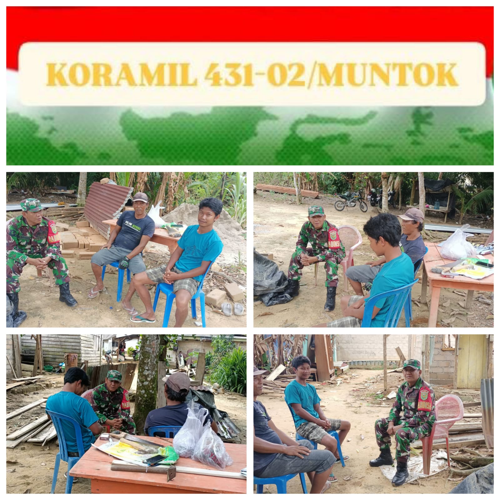 Mentok, kejarberita-news.com – Babinsa Desa Air Belo Sertu Erwin Marpaung Koramil 431-02/Mentok melaksanakan kegiatan komunikasi sosial (Komsos) bersama warga binaan di rumah Bapak Didi (45) dan Saudara Juki (25) yang beralamat di Pal 4 Daya Baru, Dusun 2, RT 009 RW 003, Desa Air Belo, Kecamatan Mentok, Kabupaten Bangka Barat.