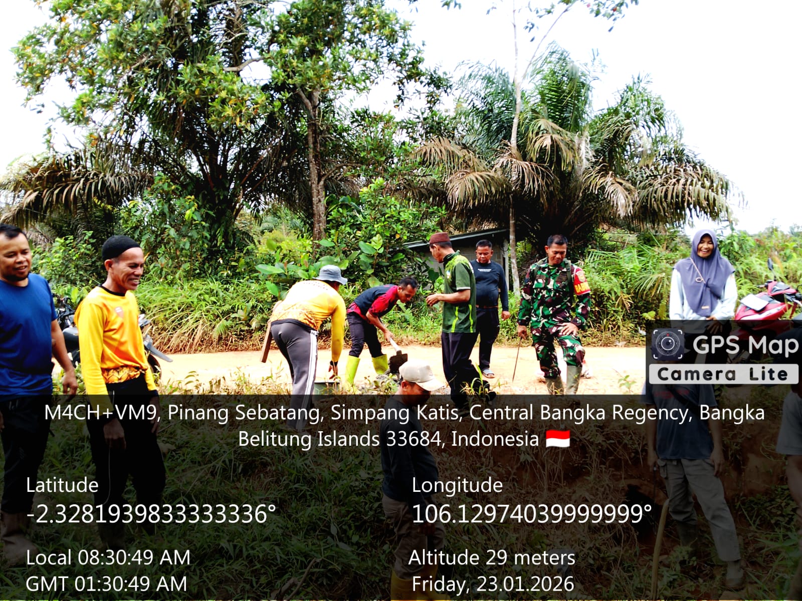 Sungai Selan, kejarberita-news.com – Babinsa Koramil 413-08/Sungaiselan, Serma Arpani, bersama aparatur desa dan masyarakat melaksanakan aksi gotong royong pembersihan lahan di Desa Pinang Sebatang, Jumat (23/01/2026).